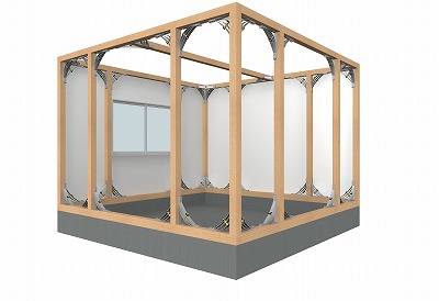 ステンレスバネが柔らかく地震のエネルギー衝撃を吸収し、座屈抵抗がブレーキとなり、縮みや伸びの作動を制御することで振動を抑えます。また、構造材の4隅に設置することで円形を成し、復元力が得られ一体となって建物の変形を制御します。
